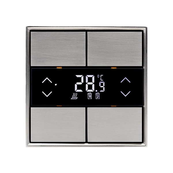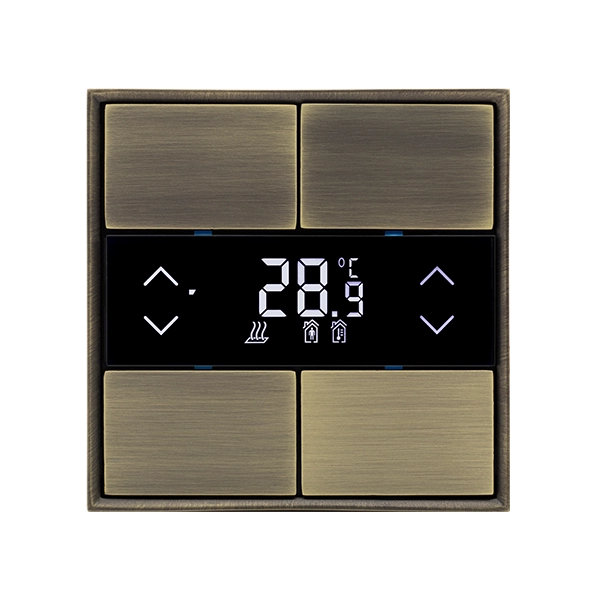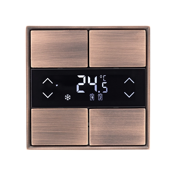 این کلید دارای سنسور دما و رطوبت داخلی و صفحه ترموستات لمسی جهت کنترل سیستم تهویه است.